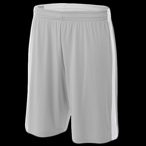 100% polyester interlock stain and odor resistant short; Ultra tight knit resists snagging; Covered elastic waistband with inside drawcord; 8õ inseam; Contrasting side panel on both sides; Open bottom for screenprinting; Moisture wicking, odor resistant, stain release;